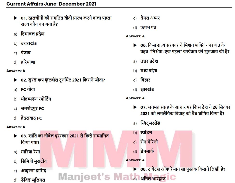 Current Affairs June – December 2021 (1300+ MCQs) PDF