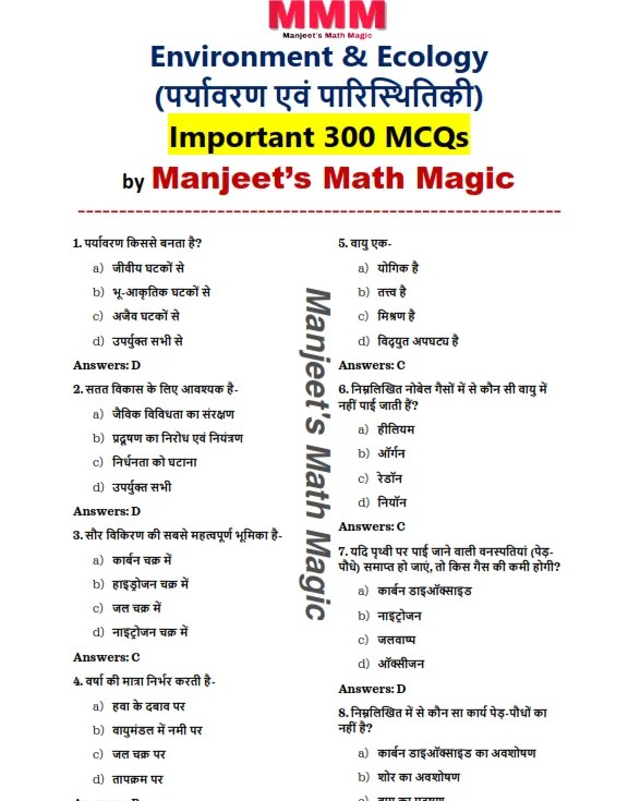 Environment & Ecology-पर्यावरण एवं पारिस्थितिकी 300 MCQs PDF